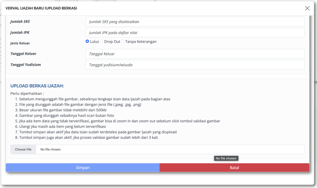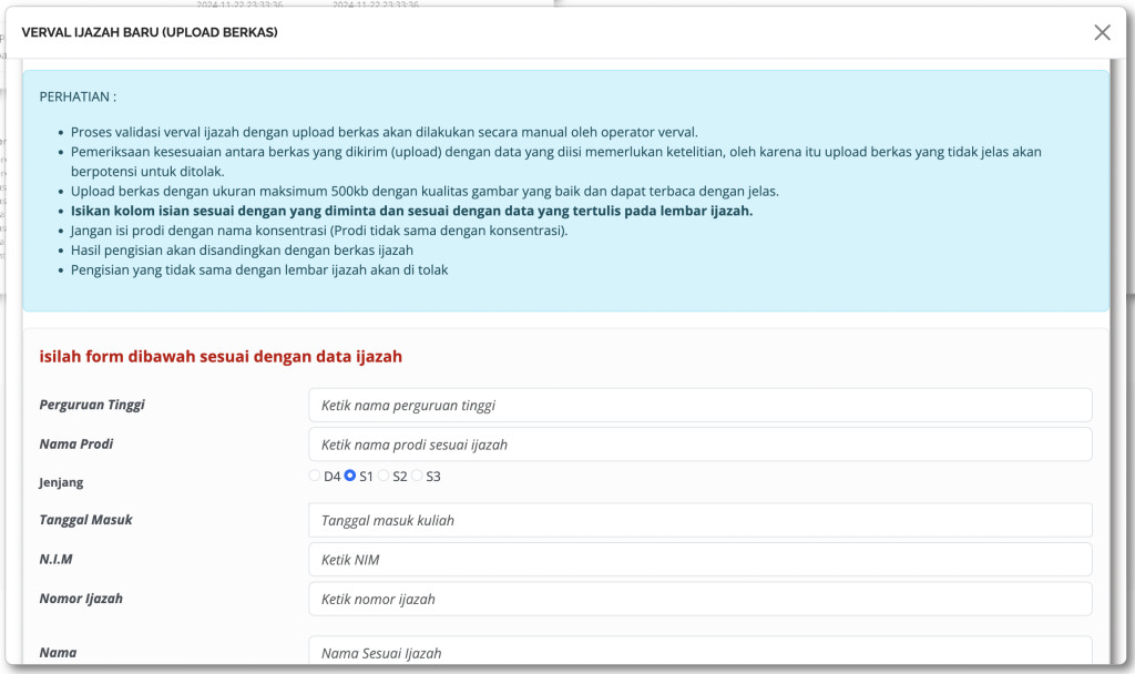 Solusi sementara untuk Unggah Data Manual di InfoGTK dan verval manual