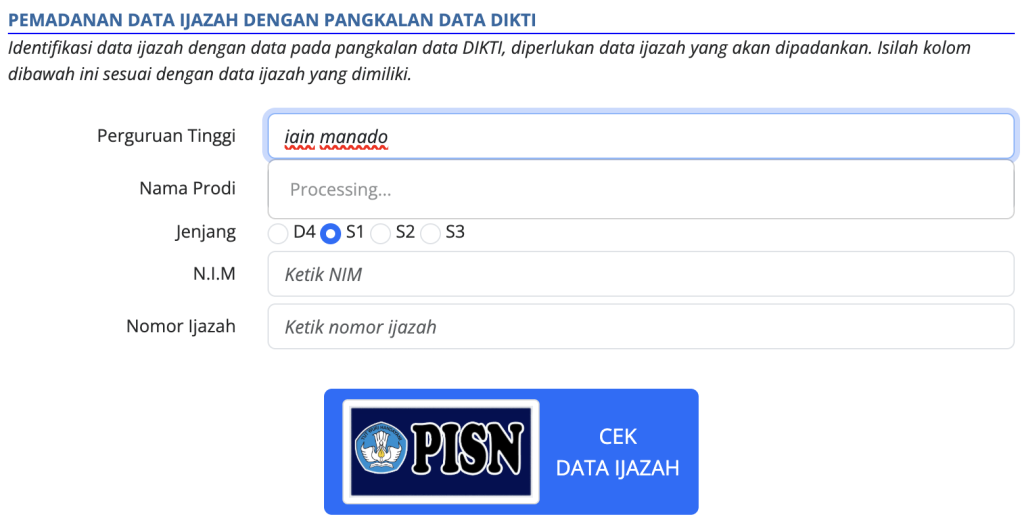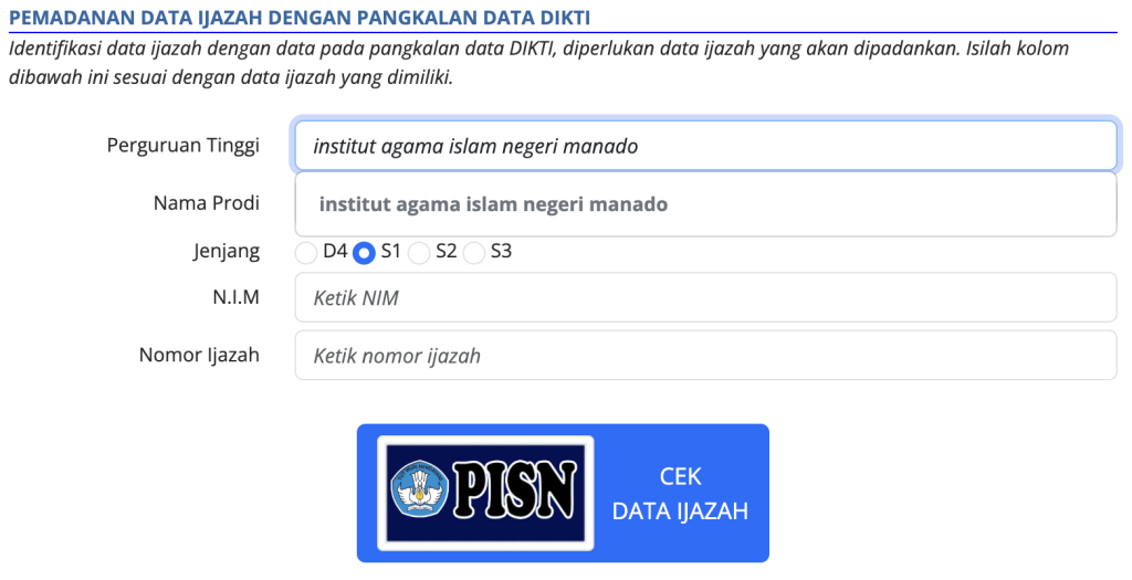 Jika ada kendala lain terkait PDDIKTI dan PISN IAIN Manado silahkan mengecek data anda terlebih dahulu di pddikti.kemendiktisaintek.go.id