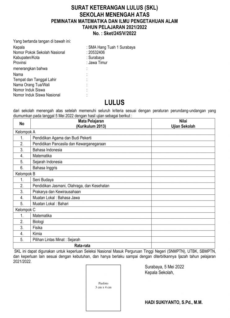 Contoh SKL : Khusus Camaba Tahun ini