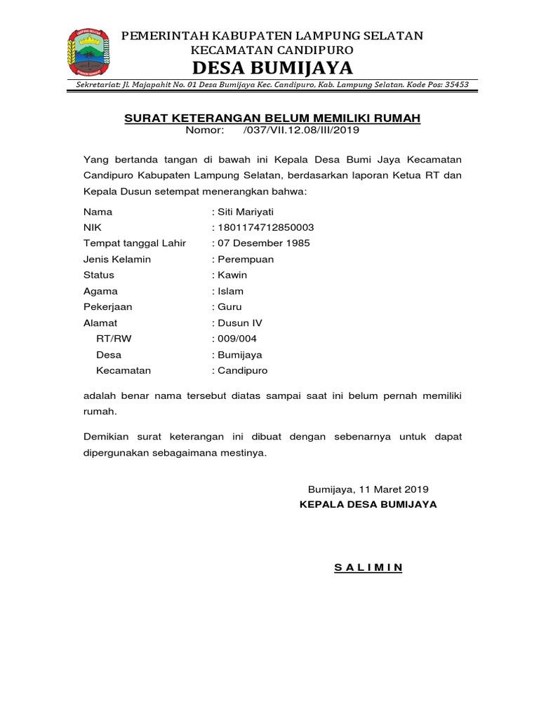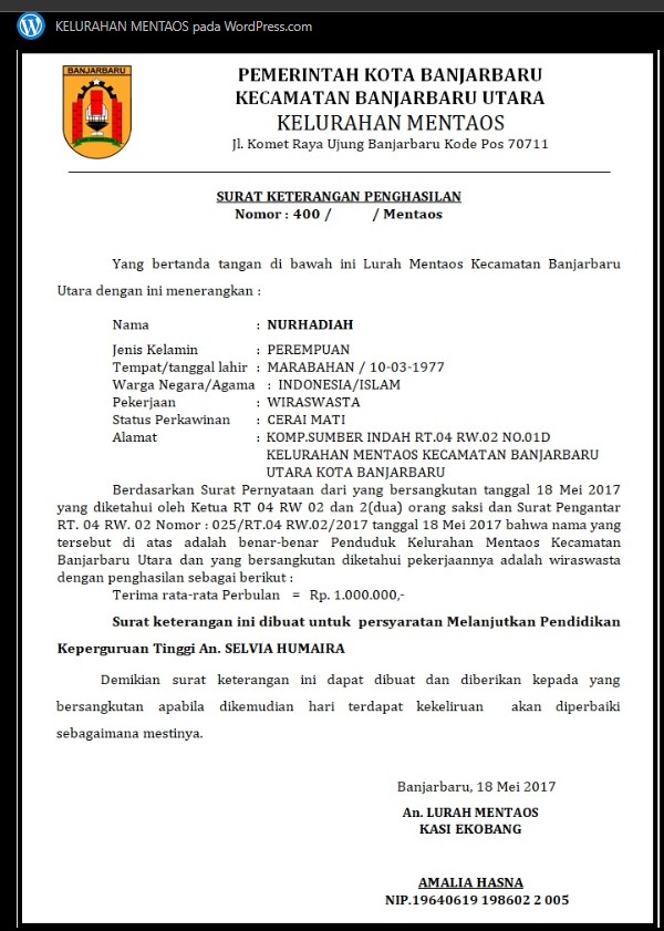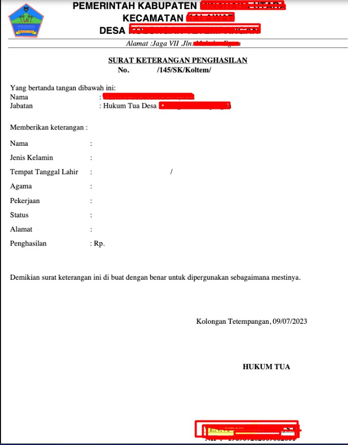 Surat keterangan gaji dari desa