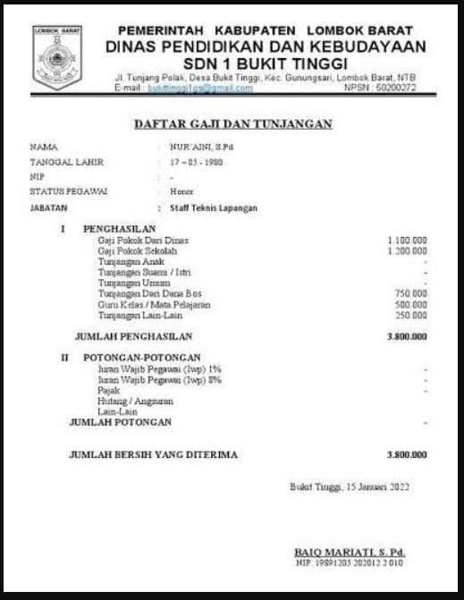 Contoh daftar gaji dan tunjangan